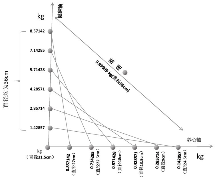 无极球包含内、外两层,内、外两层均由不同的环保材料制成。无极球的规格及重量配比如图1-2所示。