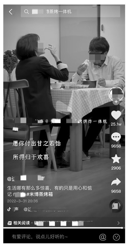 图3-11所示为某家电品牌找视频达人拍摄的视频文案,它就是用情感故事来打动观众的。该视频围绕男主人公生日这一事件展开,开篇观众会认为,女主人公因为工作忙碌和应酬忘记了男主人公生日这件事。继续观看就会发现,女主人公虽然忙,但是并没有忘记男主人公的生日。她在早上出门前就将食材放入了烤箱,为的就是结束忙碌的工作后,回家陪男主人公过生日。视频最后用一句暖心文案“愿你付出甘之若饴,所得归于欢喜——某某烘炸一体机”呼应主题。
