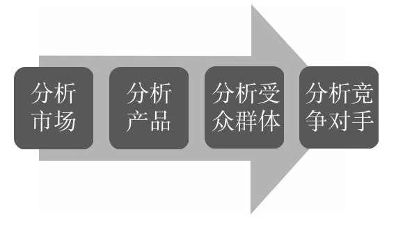 文案写作并不是简单的字词组合,也不是单纯的模仿抄袭。在写文案之前,应该做好准备工作,包括分析市场、分析产品、分析受众群体、分析竞争对手,如图3-5所示。完成这些步骤后确立自己的营销策略,才能撰写文案。