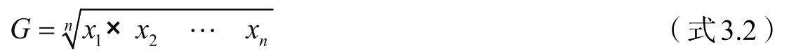 几何均数是所有x相乘,然后开n次方(n为这组数据的个数),见式3.2,计算较为复杂,一般是通过软件来计算。G是针对正偏态资料集中趋势的描述。适用范围是对数正态分布资料或等比资料。注意,计算几何均数时变量值不可以为0,也不可以同时出现正负值,因为根号下不可以为0和负数。如果全部是负数是可以的,因为可以将所有负号去除后再计算几何均数,计算后再把负号加上即可。
