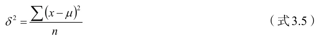 此时貌似已经完美了,可是如果一组数据的样本量100人,另一组数据的样本量20人,要计算离均差平方和,人多的数据离散性肯定大,样本量的影响不容忽视。为了更好地比较不同样本量数据集的离散性,我们可以让SS除以各自的样本量n,见式3.5,于是就得到了总体方差这个指标。