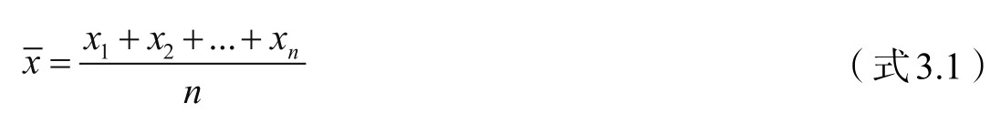 )用不同符号表示。适用范围为对称分布,特别是正态分布数据。其计算就是一个样本所有变量值相加除以样本量,见式3.1。