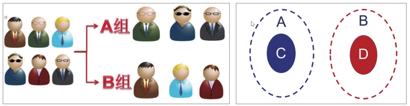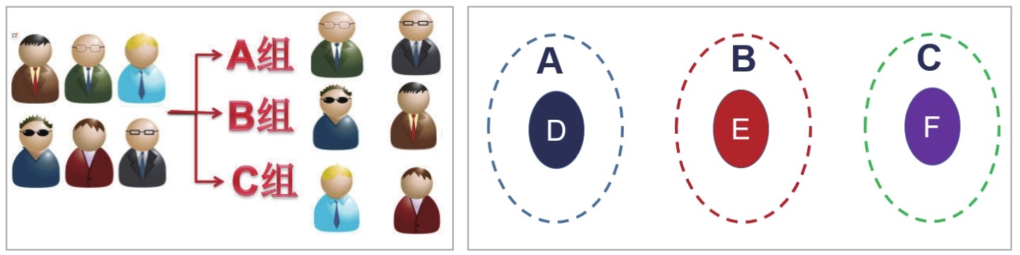 图2.3和图2.4左侧均为随机分组设计模式,右侧均为属性特征设计模式。