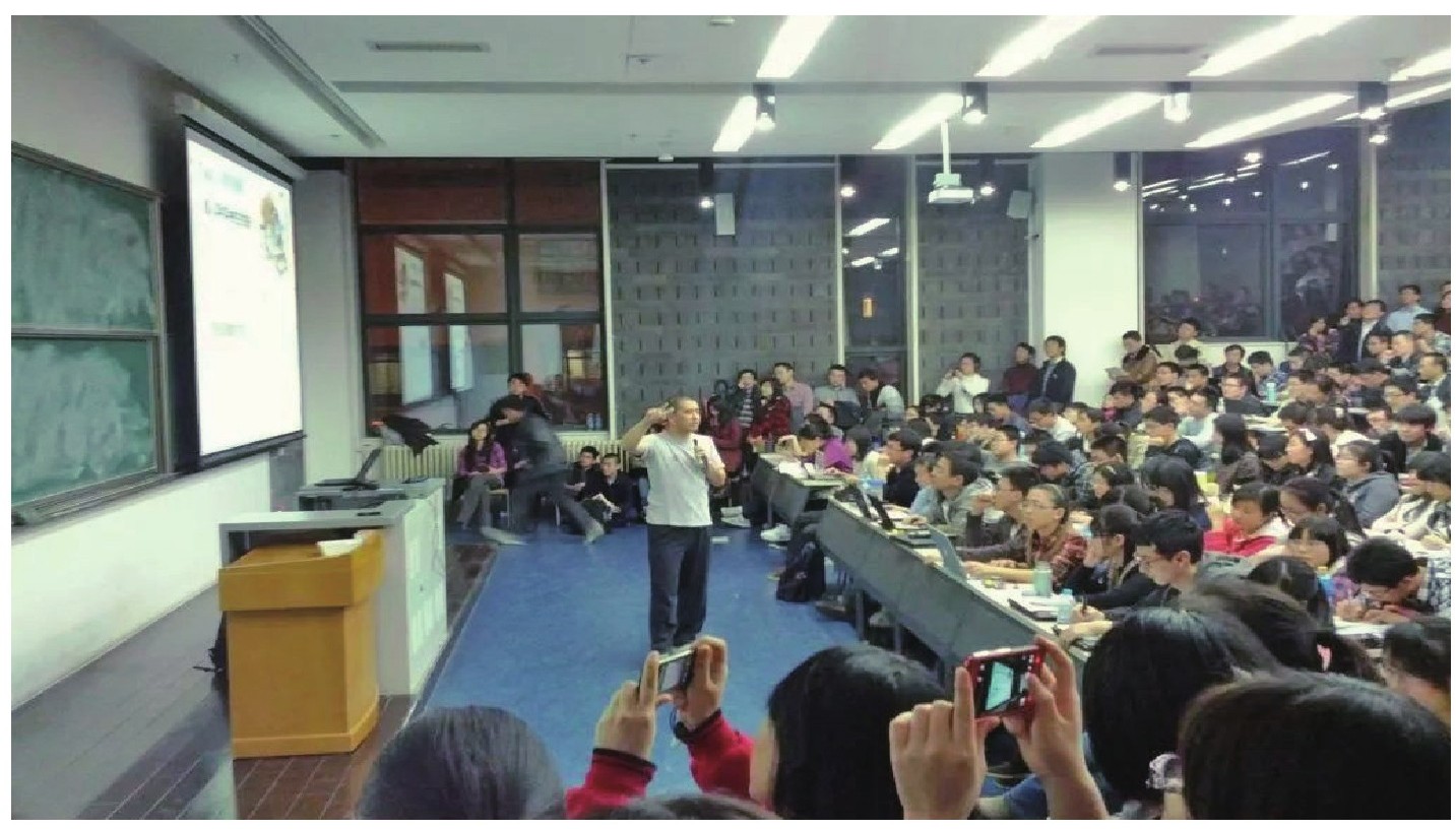 陈江认为,自己讲课水平的进步还与每年受邀做二十多场校内外的讲座有关。因为每次准备同一个主题的讲座时,他都会对演示的内容进行反复的推敲。有的内容几年下来已经讲了三四十次,当真是熟能生巧。在信心不断累积的同时,他渐渐有些庖丁解牛的感觉,以至于有闲暇去捕捉听众的现场反应,并用有趣的方式来应对。
