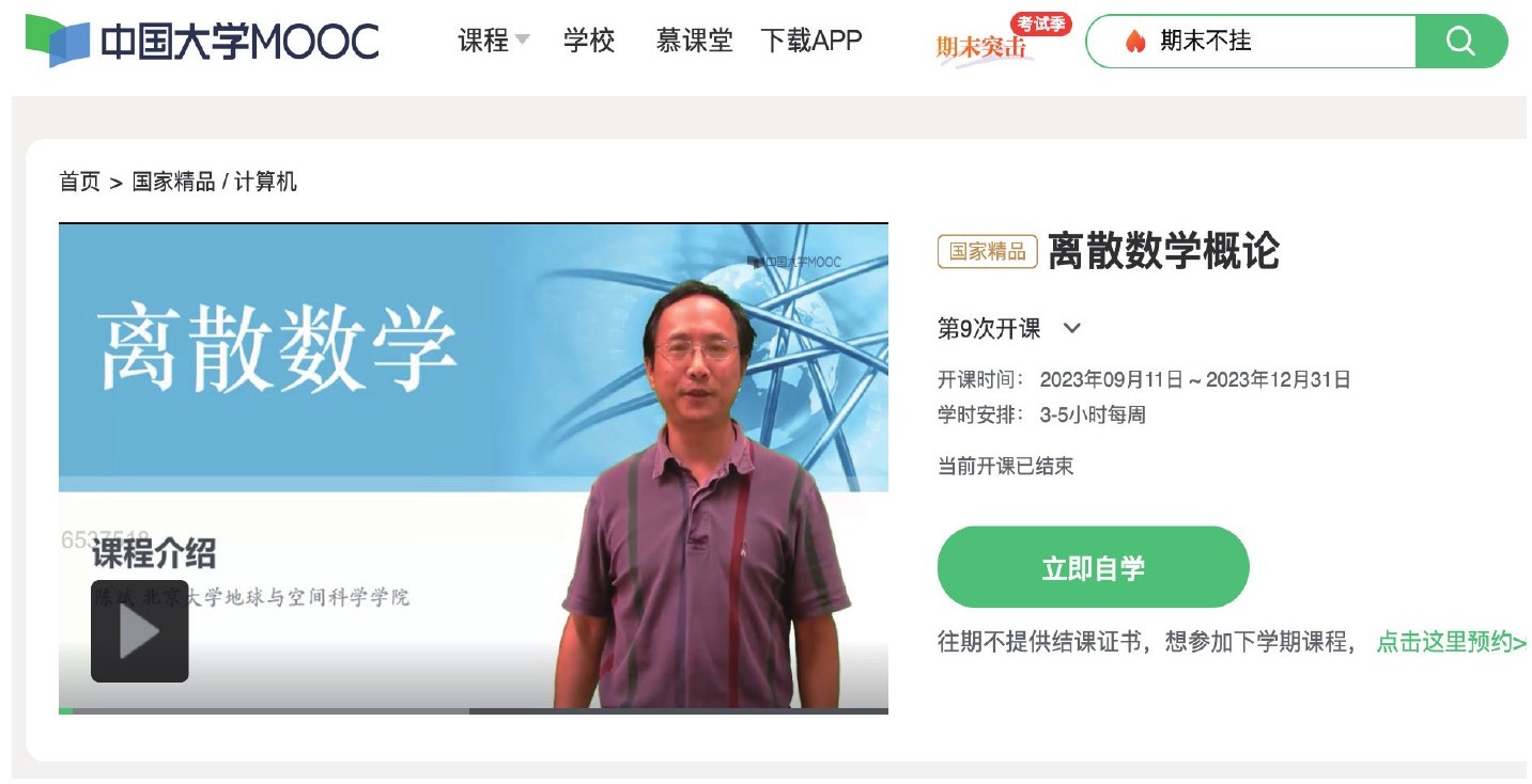 2023年12月31日,“离散数学概论”慕课结课的界面
