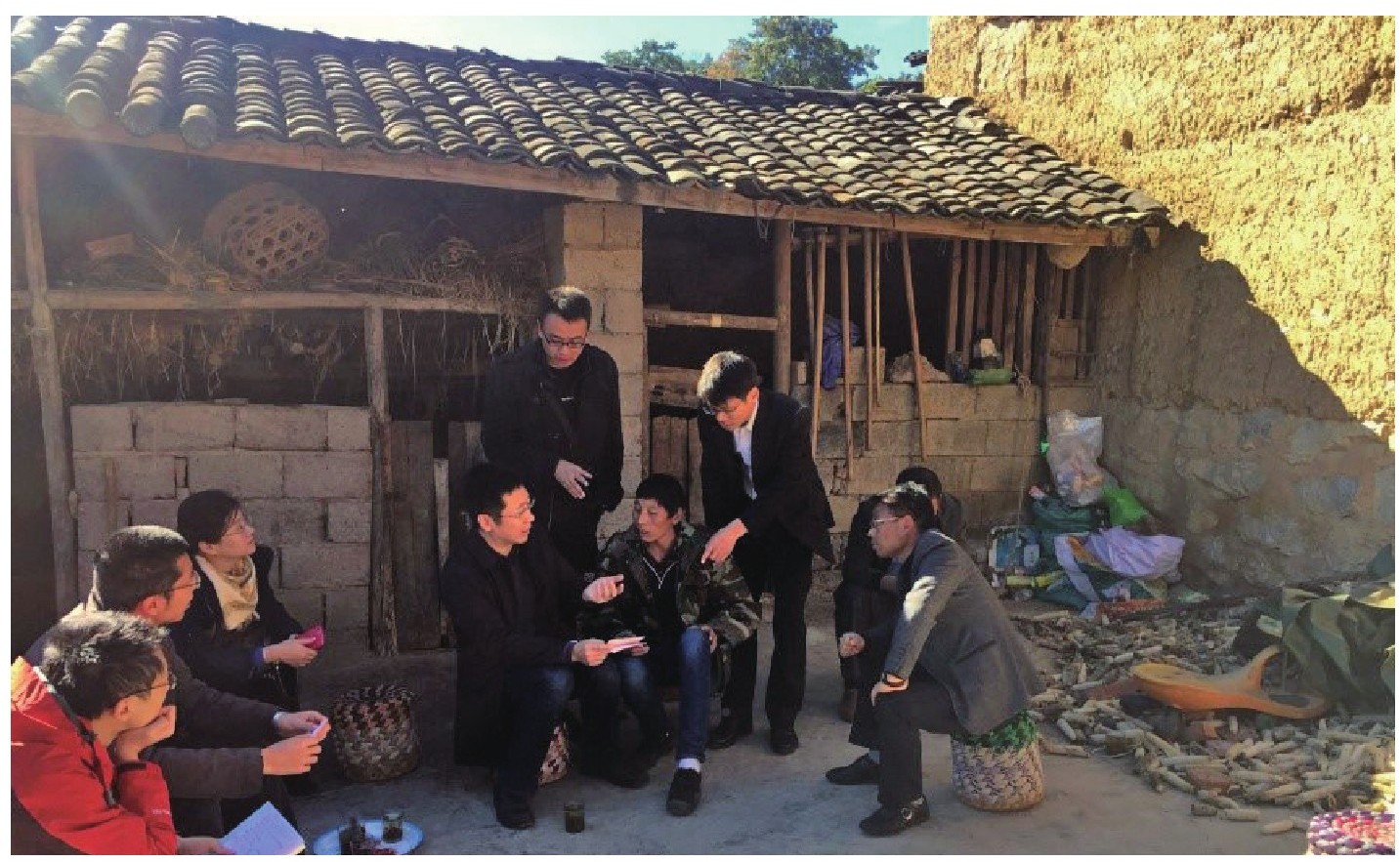 郑伟与师生到云南大理州弥渡县贫困户家中调研(2017年)