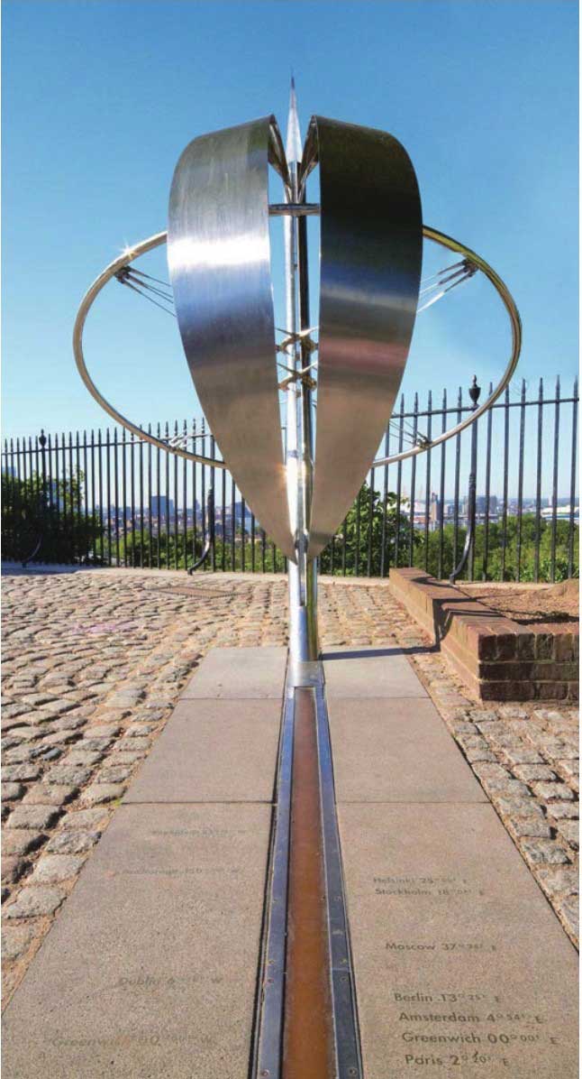 格林尼治天文台的地面上铺设了一条镶嵌在大理石带中间的笔直铜线,这条铜线就标示着本初子午线。此后,不仅各国出版的地图以这条线作为地理经度的起点,世界各地也都以此作为“世界时区”的起点。全球时间被划分为24个标准时区,每个时区跨越15经度,相差1小时。1924年,格林尼治天文台第一次通过英国广播公司向太空播发时间信号,使世界无线电听众可以根据这一时间信号校正自己的钟表。