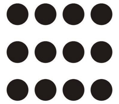 邻近律是指图形在空间上比较接近的部分容易被看成一个整体。图2-33中,大多数人都会自然地把那些圆分为三行而非四列。在排版文字时,行距要大于字距即是利用这个原理,否则阅读体验就很差。在版式设计或UI设计中,也是把同类信息的距离调近形成一个板块,以降低认知负荷,提高信息传达的效率。在Logo设计中,一般图形部分和文字部分的距离比文字之间的距离大,即区分图文部分,如图2-34所示。