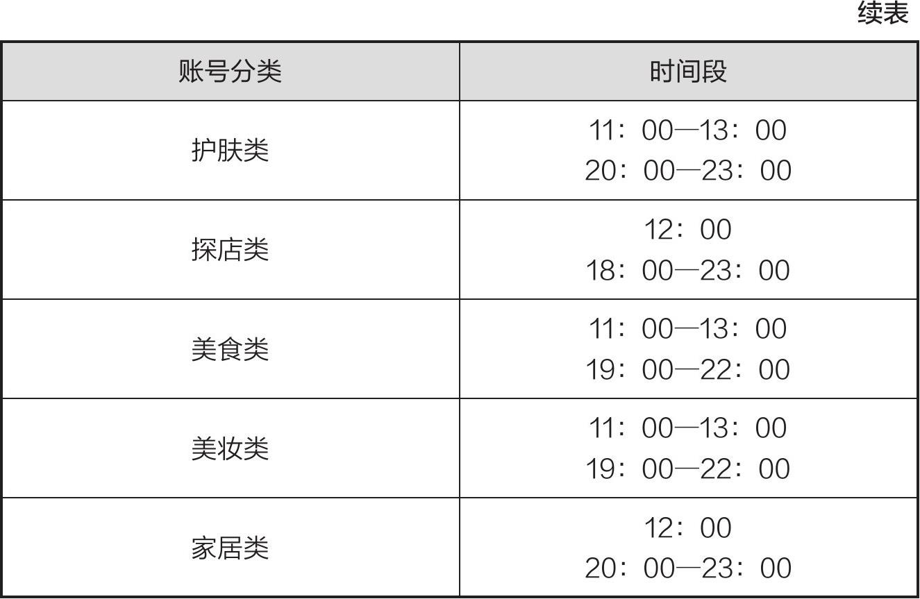 大部分账号的发布频率,建议以此为依据操作(见表1-23)。
