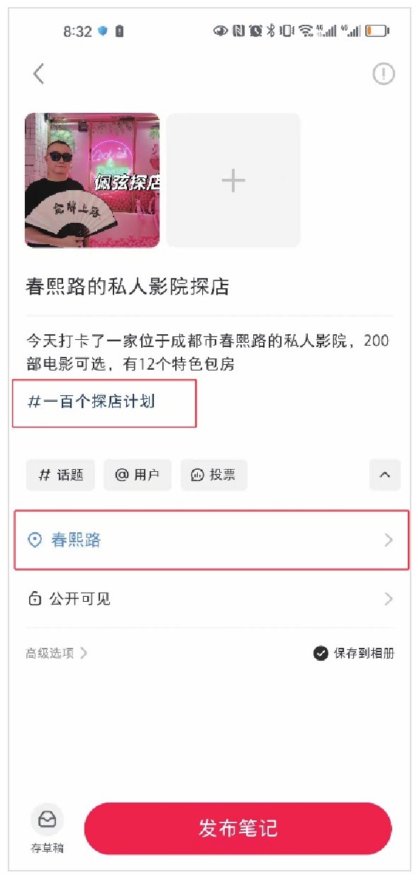 小红书中如何打标签才能方便机器识别和推流?一是可以给笔记图片标记上地理位置或关键词(见图1-26),二是可以在发布时加上话题标签和位置标签(见图1-27)。