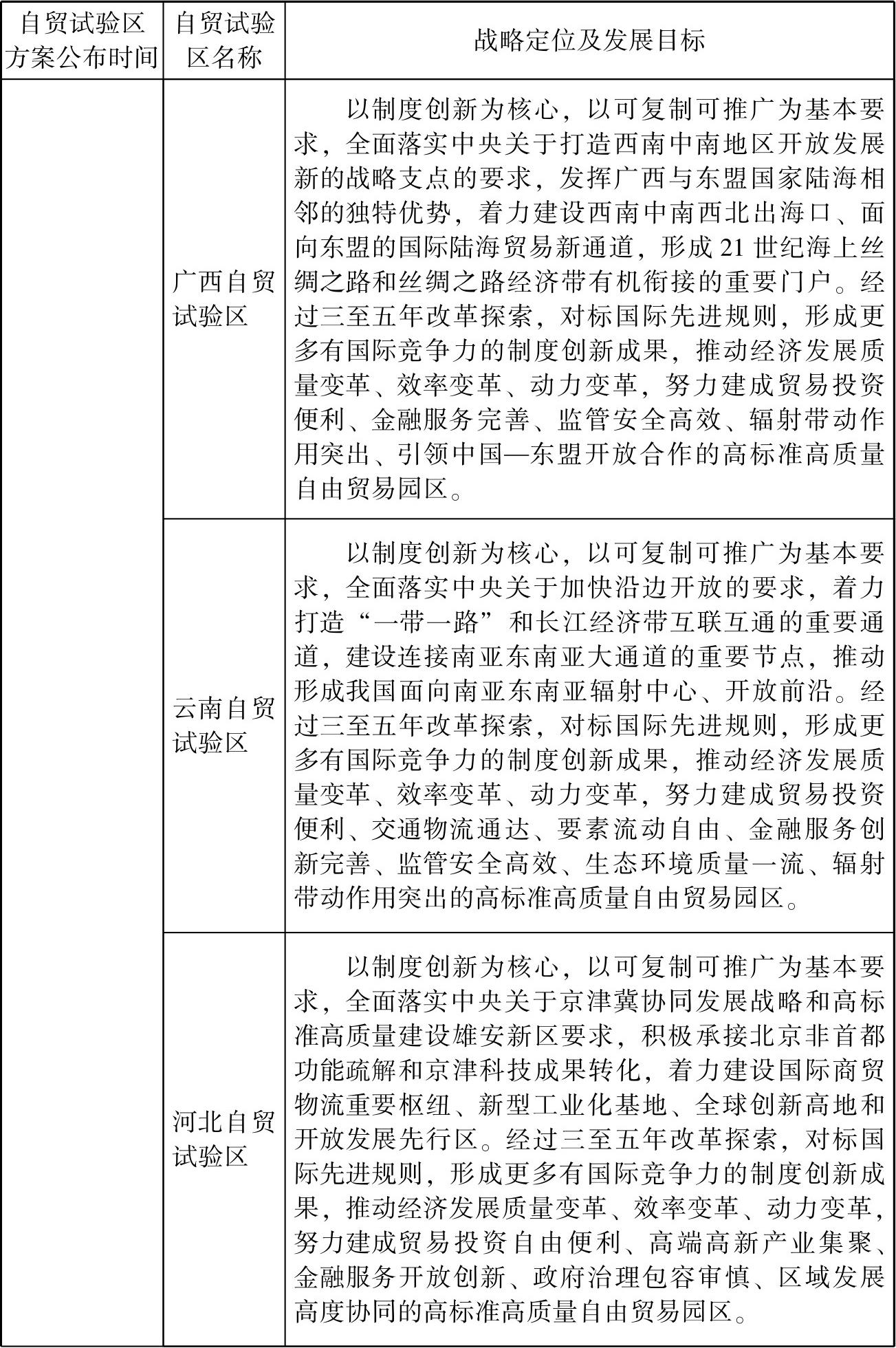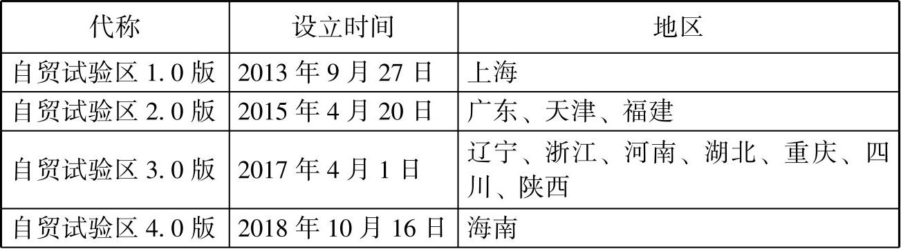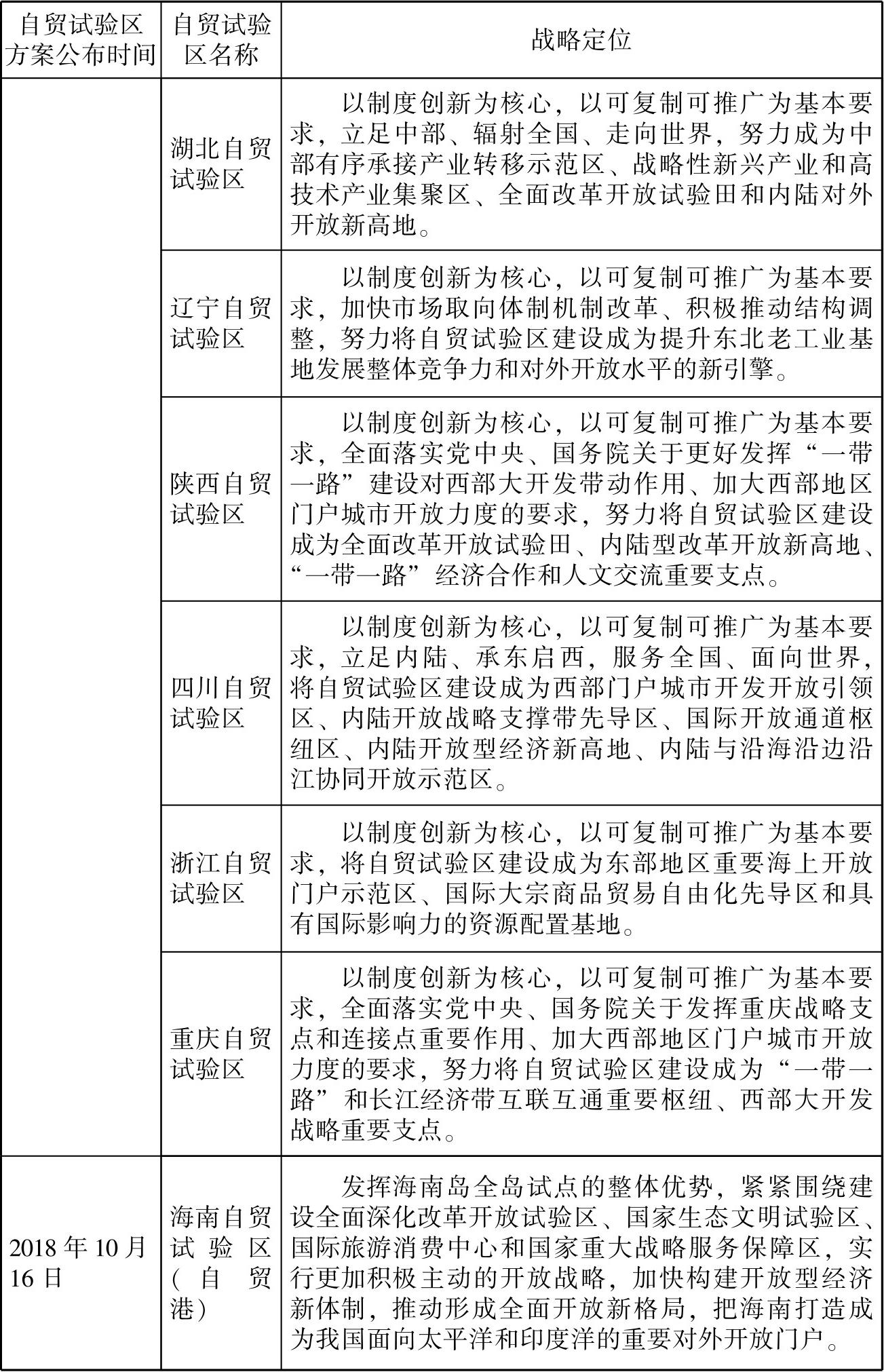 表1.3 自贸试验区1.0—4.0版的主要内容
