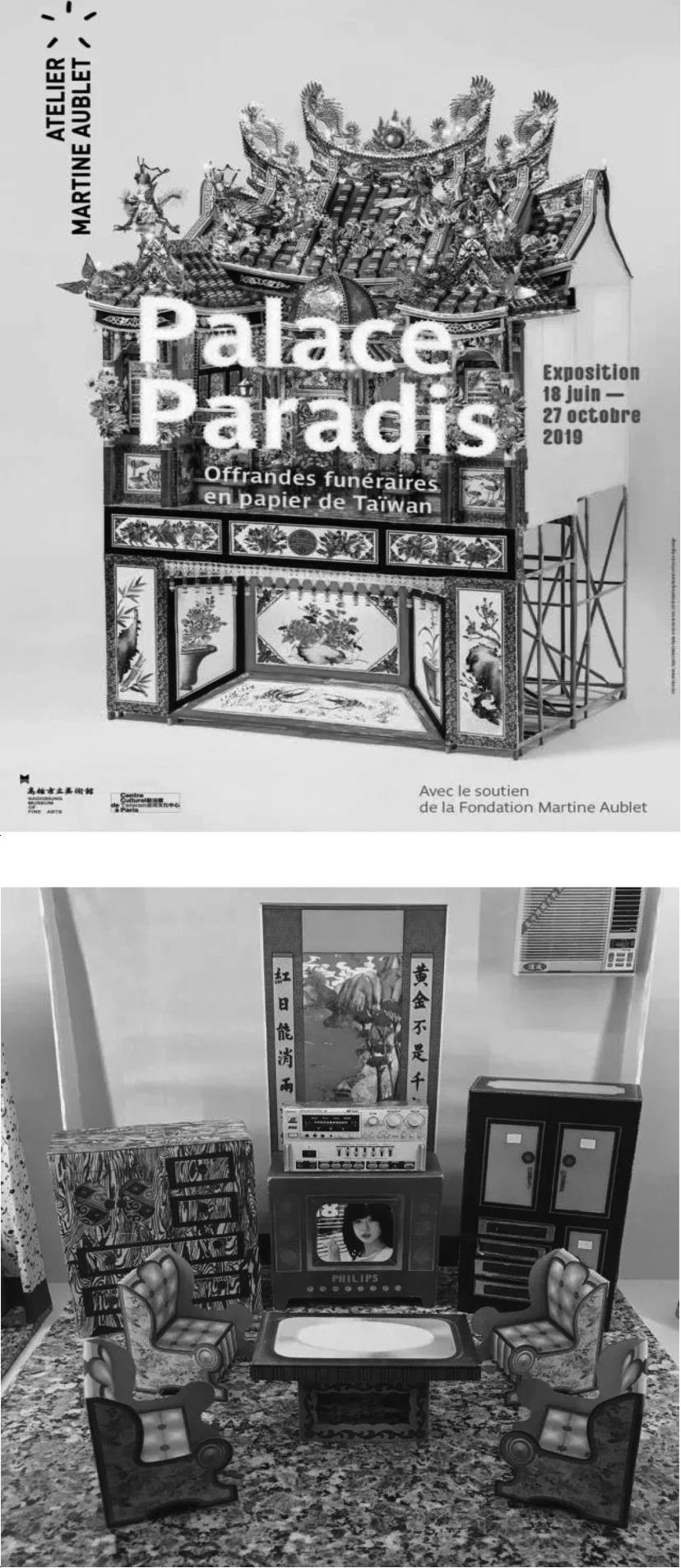图二 法国人在邻近埃菲尔铁塔的凯布朗利博物馆办了个“极乐天堂”艺术展,里面展览了中国人用作祭祀的各种纸扎。