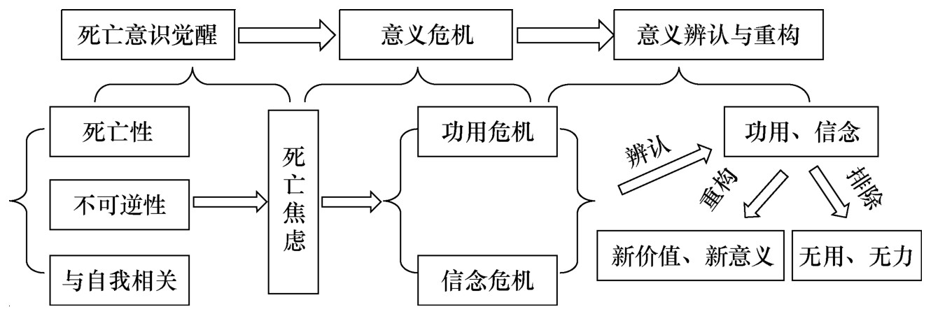 图三 死亡意识觉醒后人的意义危机及其辨认和重建过程