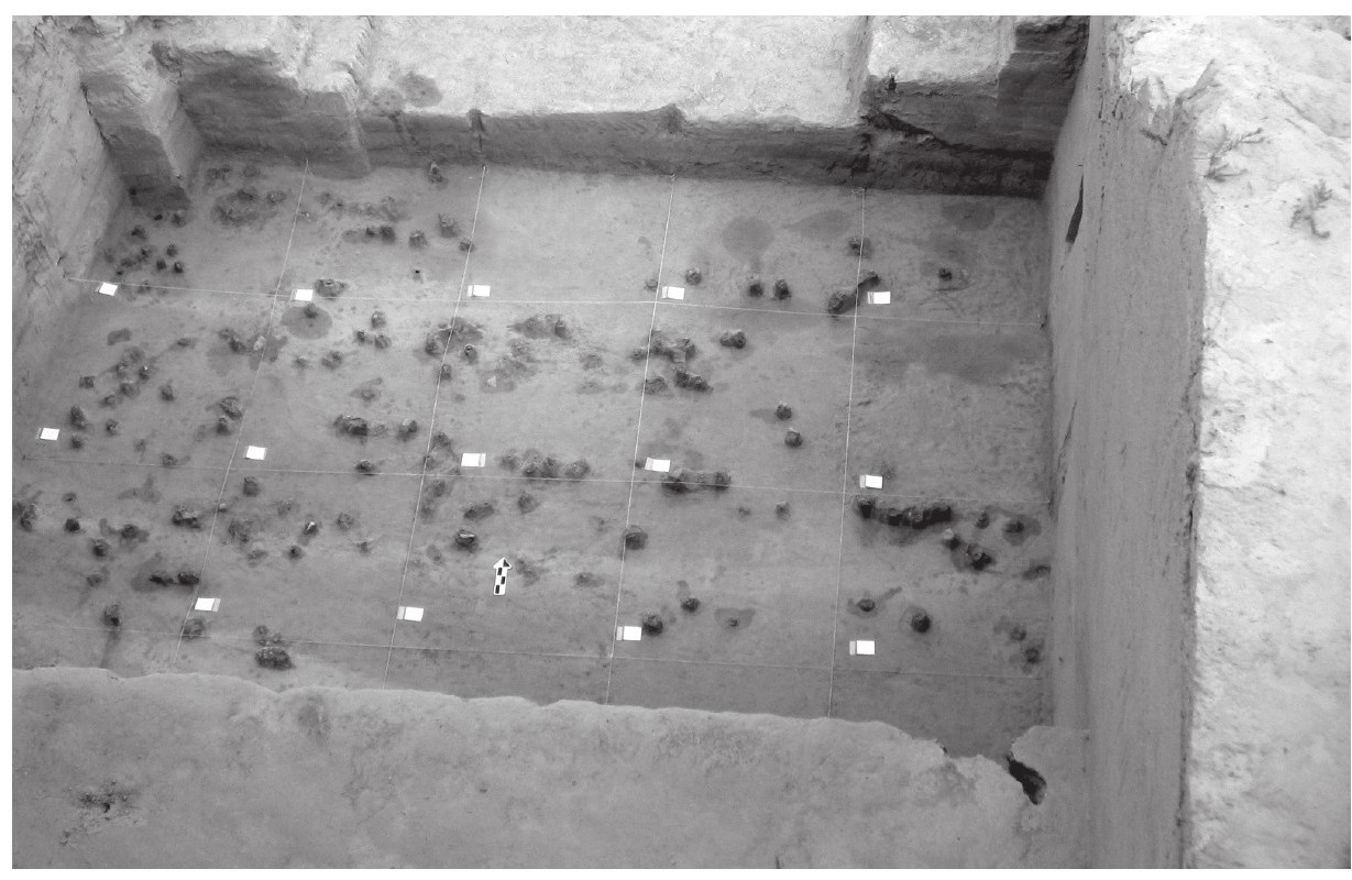 说这个遗址适合本科生实习,是因为这里有房址、灰坑、墓葬、壕沟等常见的考古遗迹,且是不同时期的,空间上有叠压关系,比如后来的半地穴式房子破坏了更早期房子的一角。更妙的是,这样的打破关系不是很多。不同时期的房址形状、大小、深浅、包含物并不一致,所以判断早晚关系并不那么困难。部分房址里的出土物很丰富,还很完整,这是我们很喜欢的,谁也不愿意发掘多日,两手空空。地层关系的复杂程度适中,遗物丰富多样,不同时期器物风格鲜明,当然是非常理想的实习地点。最大的可能是土质土色容易区分,黄土地带,生土与人工干扰过的土壤颜色差异明显。相比而言,如果是在东北黑土地带发掘,到处都是黑乎乎的,真的好难区分。同样,在南方潮湿的水网地带,也不是很好区分,由于地下水很浅,需要不断排水,总是在泥泞中工作。白音长汗这里干燥,下雨的时候不多,往往是急骤而短暂,发掘工作受天气的影响比较小。在考古学界,通常认为吉林大学的毕业生田野考古发掘的功底比较好。其中有个重要的原因,就是本科实习的遗址选得比较好。过于简单的遗址,或重复度特别高的遗址如汉墓,再就是时间紧张的抢救性发掘,都不适合本科生实习。过于复杂的遗址,比如有的遗址叠压关系非常复杂,而且深度超过三四米,几个月实习期内都不能挖到生土,这会让学生非常崩溃,这个地区夏家店下层文化(相当于夏商阶段)的遗址就是如此。学术训练需要循序渐进,需要培养兴趣,难度适中的遗址就是一个循循善诱的老师。
