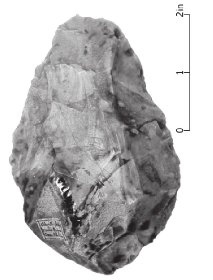 相对前两个分支而言,旧石器考古的出现更晚,不仅仅因为相关学科此时刚刚成熟,更因为此时才有相关材料的发现。工业革命带来开矿、挖掘运河、修建城市下水道等方面的需要,而且挖掘的深度是前所未有的,于是人们有机会遇到深埋在地下的动物化石与古老石器。旧石器考古创立之初主要涉及三个问题,而且都与真实性相关。首先是石器,认识磨制石器与加工精致的打制石器相对容易,当时的世界上还有一些族群在使用石器,但是对于那些只有初步加工痕迹的石器而言,并不是那么容易识别的,即便是现在,研究者仍就部分石器材料具有人工性质而争论不休。很幸运的是,英法两国发现的旧石器中有制作相当规整的手斧【图1.6】,这类石器以当地出产的燧石结核为原料,两面加工,形制对称,其人工痕迹较为明显,也相对较容易识别。在建立欧洲旧石器时代序列的研究中,法国学者的贡献最为突出,德佩斯之后,还有拉尔泰(Lartet)、莫尔蒂耶(Mortillet)等。法国西南部、西班牙北部一带有许多石灰岩洞穴,保存有众多旧石器时代遗址,为研究提供了丰富的材料。拉尔泰根据石器伴生动物群来建立年代,莫尔蒂耶更进一步,直接利用石器本身的形态。第二个方面的问题是有关人类化石,1856年发现尼安德特人(简称“尼人”)化石,并不断有其他人类化石发现;关于尼人的地位,也曾争论不休,刚开始将其视为得了关节炎的患者。1868年发现了克罗马农人的化石,这属于解剖学意义上的现代人。第三个问题是关于史前艺术,1878年发现西班牙阿尔塔米拉洞穴壁画,但是一直不能获得承认。1897年,步日耶重新研究,发现图像中有灭绝的动物。