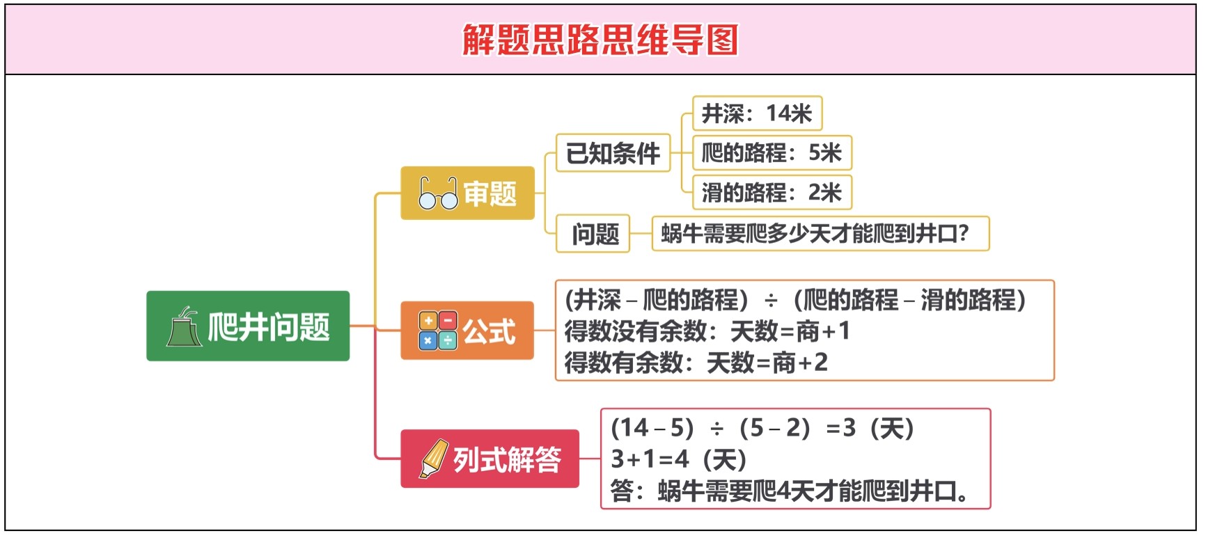 爬井问题是对应思维中比较典型的一类问题,此类问题的数据在不同的题中会有变化,但描述的情形几乎相同。