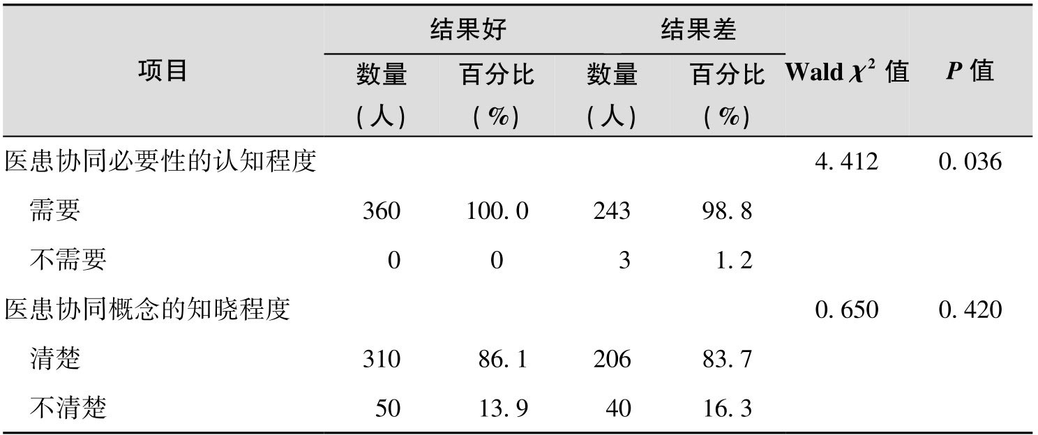 在医务人员对医患协同认知的单因素分析中,医务人员对医患协同必要性的认知程度和对医患协同概念的知晓程度的差异均有统计学意义(见表1-2)。