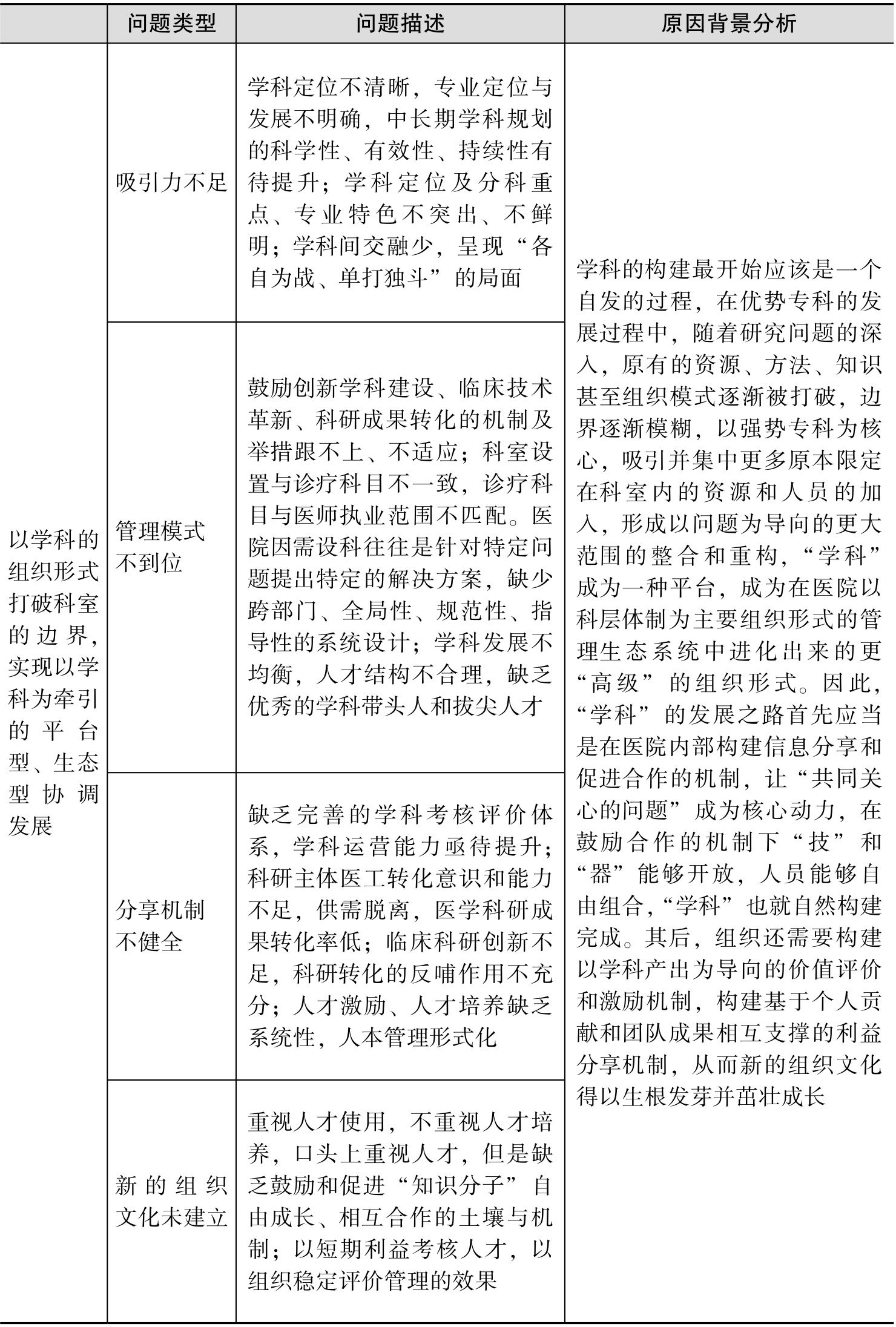 表1-4 从“科室”走向“学科”——主要问题和分析