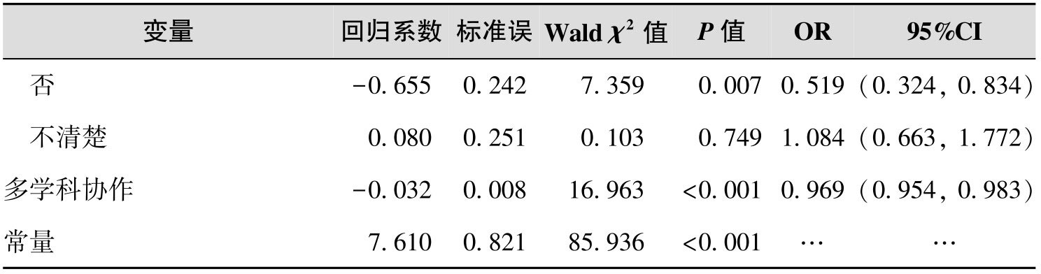 表1-1 ERAS实施影响因素的多因素分析结果