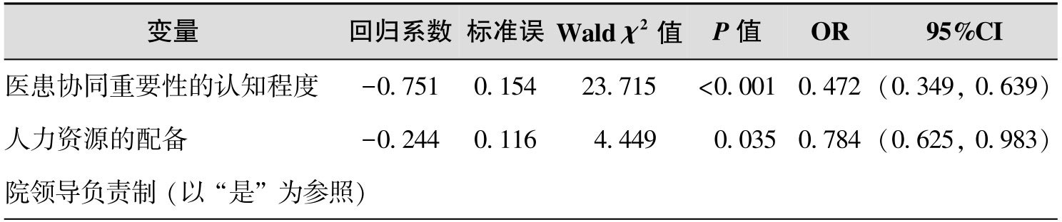 在医务人员对医患协同认知的单因素分析中,医务人员对医患协同必要性的认知程度和对医患协同概念的知晓程度的差异均有统计学意义(见表1-2)。