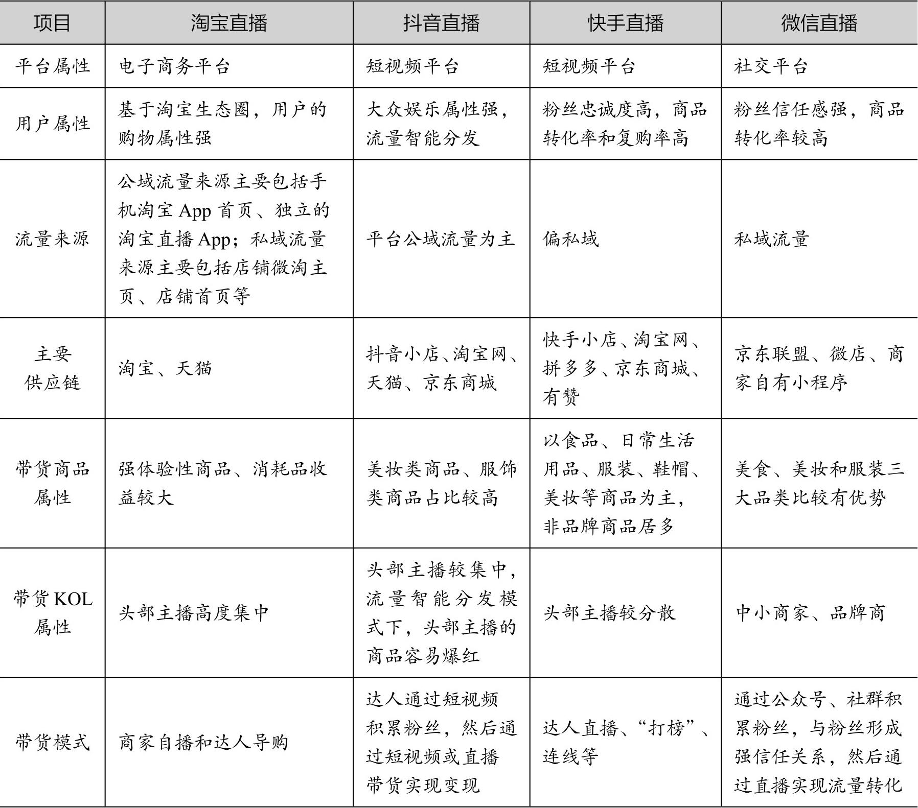 为进一步认识以上4个直播平台,可参考如表1-4所示的直播生态特征。