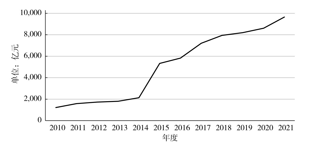 居民消费崛起并替代政务消费是白酒行业二次增长的重要因素。我国白酒行业收入由2002年的496亿元增长至2011年的3, 747亿元,10年黄金期实现了近七倍的增长。但2012年年末以来,受到限制“三公消费”等政策因素影响,高端白酒消费市场遇冷降温,逐渐由政务消费向居民消费倾斜。2015年后,居民消费需求上升,以高净值人群为主要客户的高端白酒行业进入新一轮涨价潮,白酒行业营业收入快速增长。以贵州茅台为例,2015年后贵州茅台主动改善白酒消费群体结构,并进行系列酒改革转型。一方面,贵州茅台以扩张中低端市场为目标,培育酱香酒品牌。到2017年年底,定位于小康人群的茅台酱香系列酒成为企业主要的增长点。图2-2是2012—2021年白酒行业与贵州茅台营业收入情况。另一方面,贵州茅台进行营销模式转型,扩大直销渠道,重点扶持大型商超和电商渠道,减少中间环节。2022年通过上线“i茅台”App,贵州茅台运营私域流量直接触达客户。