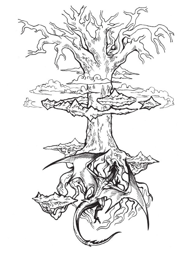 在北欧神话中,尼德霍格是盘踞在世界树底部的黑龙,它与其他无数毒蛇一起盘踞、啃食着树根。当树根被食尽,世界树腐朽,世界就会毁灭。
