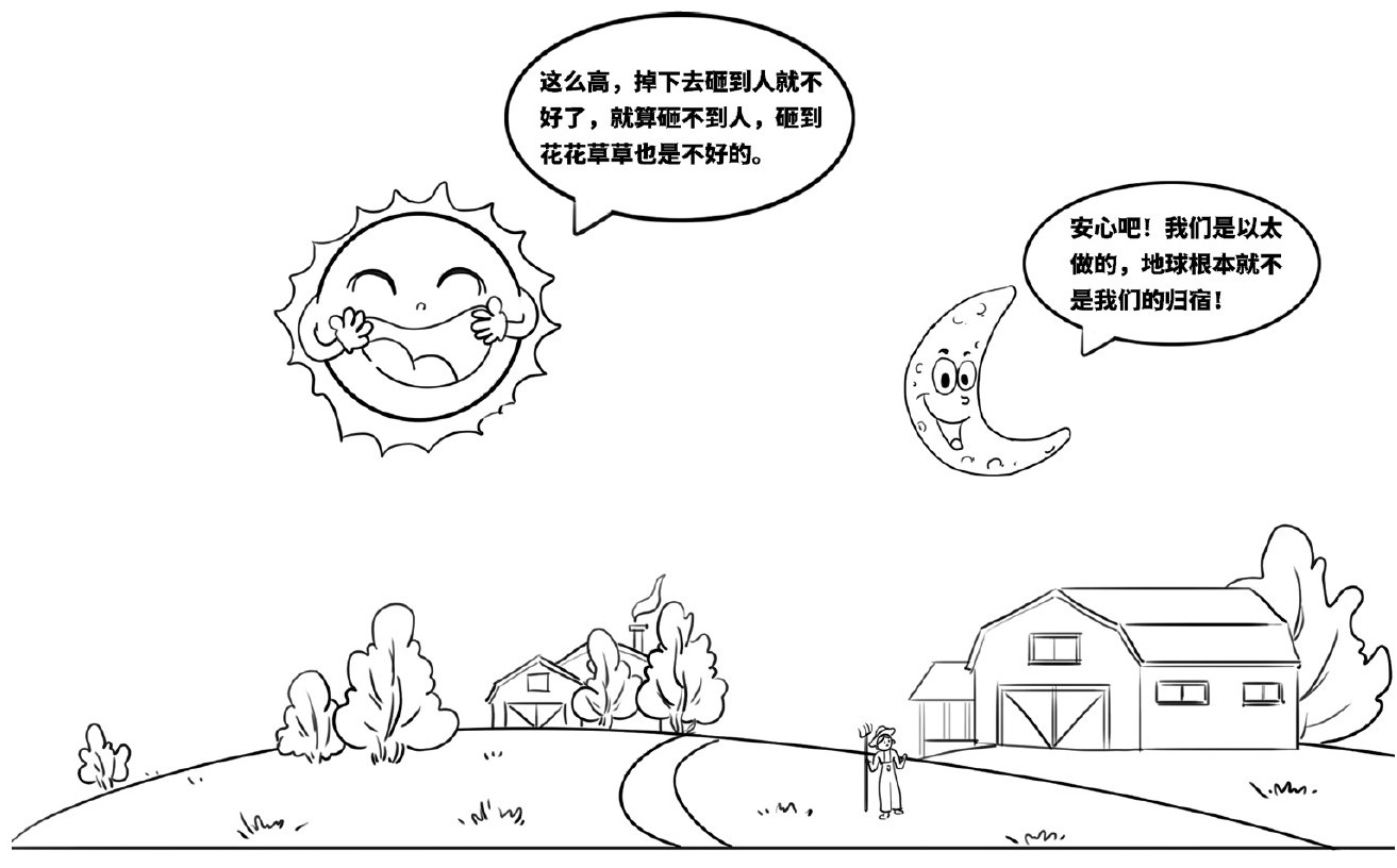 地球是宇宙的中心,一切“向下”都指向了地心,所以抛起来的一块小石头会因重力而落到地面上。请问太阳、月亮和星星为什么没有落到地球上呢?难道它们就没有重力吗?