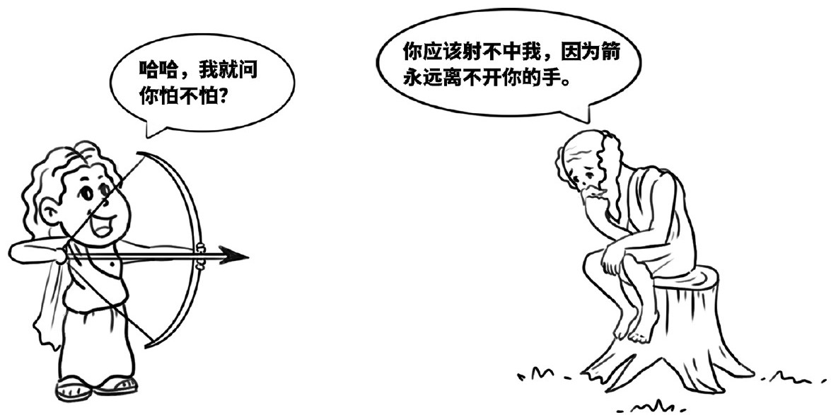 在亚里士多德之前,著名哲学家芝诺(约前490—前430)就曾提出一个悖论:一个人要从A点到B点,必须先到达AB的中点C,要到达C点,必须先经过AC的中点D……无限分割下去,中点就无限接近于A点。也就是说,这个人无法离开A点,所以芝诺认为运动是不存在的。也许你会认为这只是哲学家的一家之言,但如果把人换成一支箭,就会出现“我站在你的正前方,你的箭却射不中我”的荒诞逻辑。