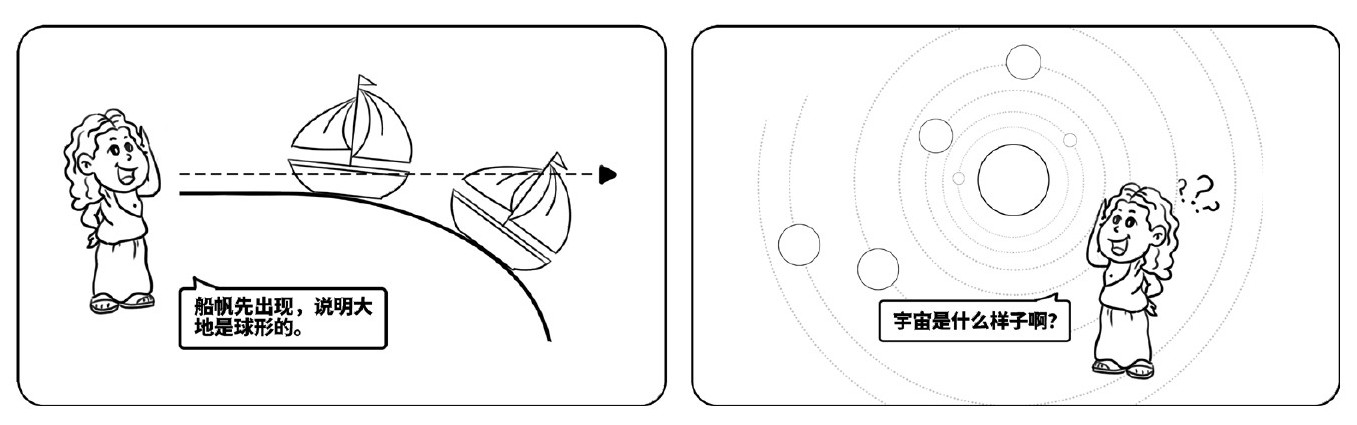 然而对于自然哲学,古希腊人的盘根问底从未“适度”,比如,当看到一艘船从大海上归来,站在岸上的人总是先看到船的桅杆再看到船身,他们就会猜想大地可能不是一块板,而是一个球;当诸多现象证实大地是个球后,他们又会猜想宇宙的模样……
