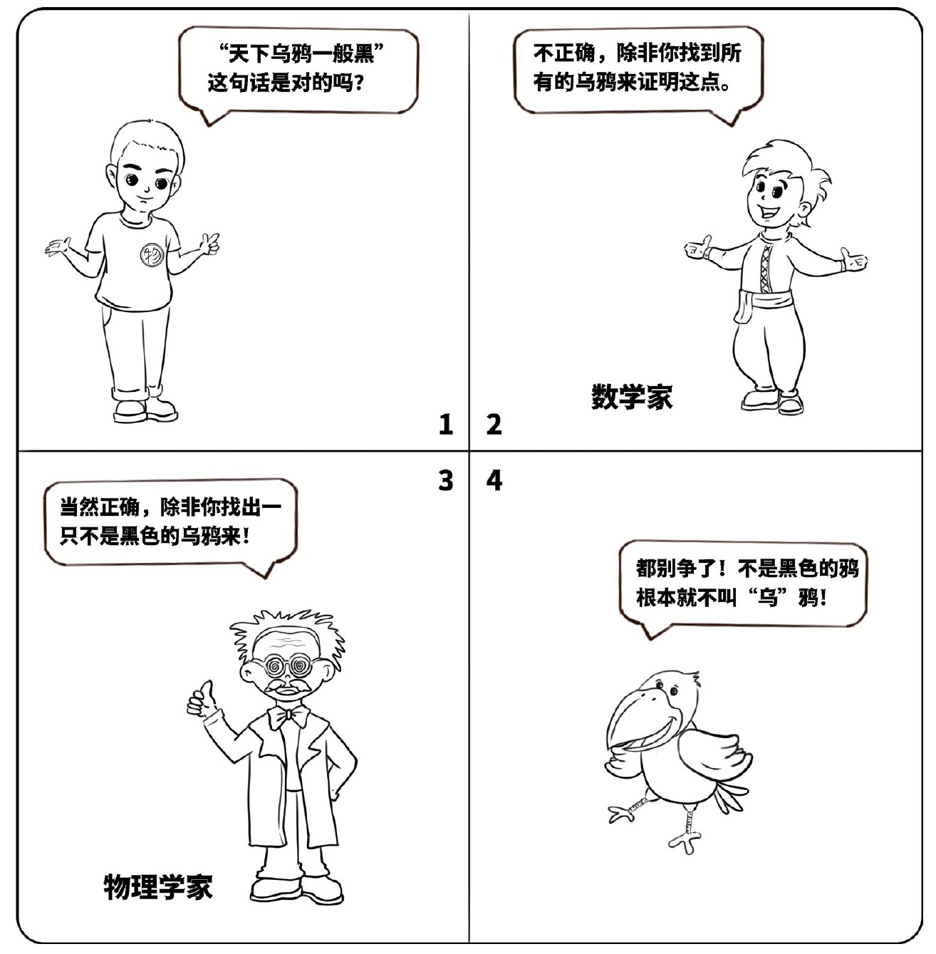 物理学家:“从大量的观察对象来看,乌鸦必然是黑色的。这就是物理学中的‘唯象论’。如果要证明这句话是错误的,就必须找出一只不是黑色的乌鸦来。”