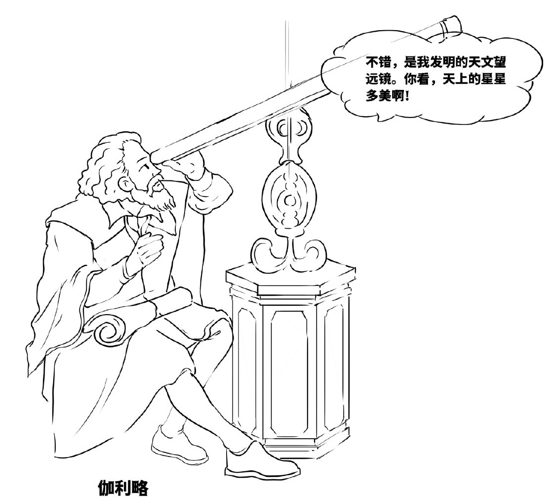 一位数学家是伽利略。1609年,伽利略听说荷兰人发明了一种神奇的东西——望远镜。它仅仅由几个凹凸透镜制成,用它观察却比肉眼清晰十数倍。于是,伽利略花了一个月的时间发明了新的望远镜,新望远镜比荷兰人发明的还要清晰。有了望远镜,伽利略发现了许多从未发现过的天文现象,此处仅列举几条。