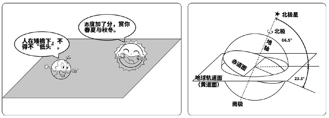 地球上的四季不仅有温度差异,白天和黑夜的长度也是不一样的,拿北半球来说,冬至日白天最短、黑夜最长,夏至日白天最长、黑夜最短。这一切都可以用地球公转与黄赤交角来解释。