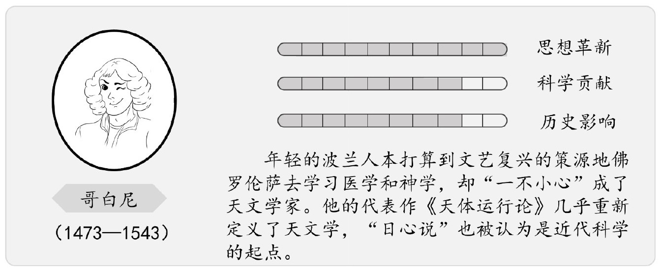 哥白尼: 不得不承认这很难解释,因为人们发现的新天体都很好地被托勒密的地心说所描述,尽管有一些小小的出入,但总体上还是没错的,只是这大圈套小圈实在让人厌烦。