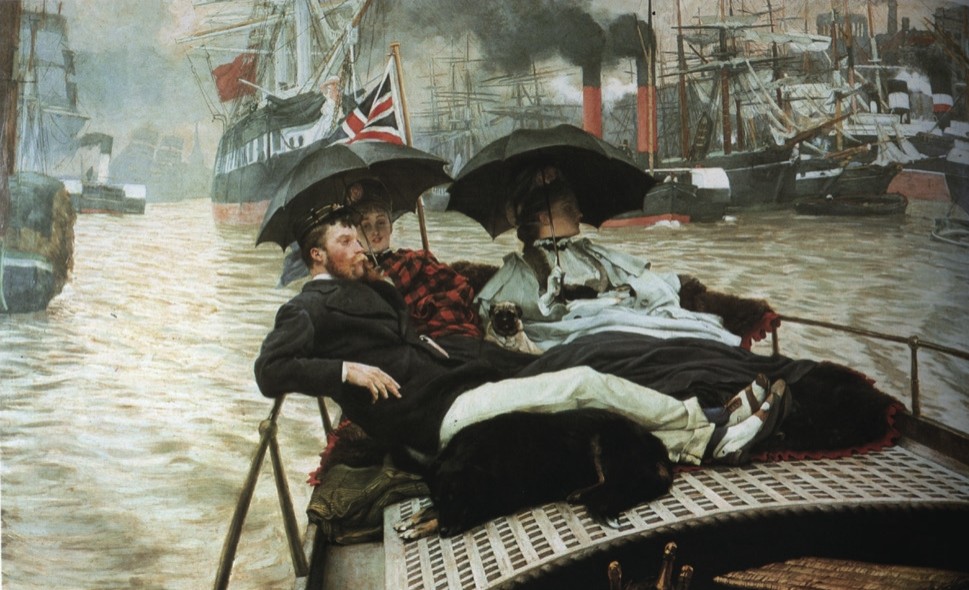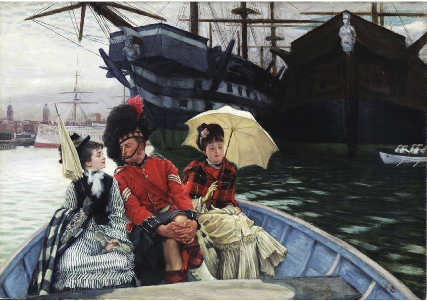 法国画家天梭(James Tissot,1836—1902)的画作《泰晤士河》于1876 年在位于英国伦敦的皇家艺术学院展出时,观众震惊了,因为“其中人物的性道德有问题”,于是他改画了一幅,作为“一种纠正”。