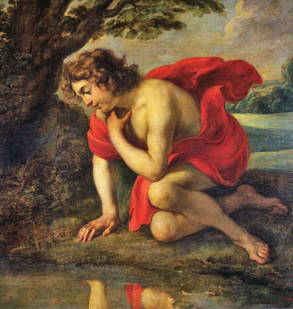 希腊神话里的美少年奈煞西施(Narcissus)。霭理士将“影恋”作为一种特殊的性心理,并将其源头追溯到希腊神话中的奈煞西施。奈煞西施因拒绝山林女神求爱致其死亡,司报复之神遂罚令奈煞西施爱上泉水中的自身倒影,奈煞西施日日对影哀叹,最后也不免憔悴而死。这和冯小青的故事颇为相似。