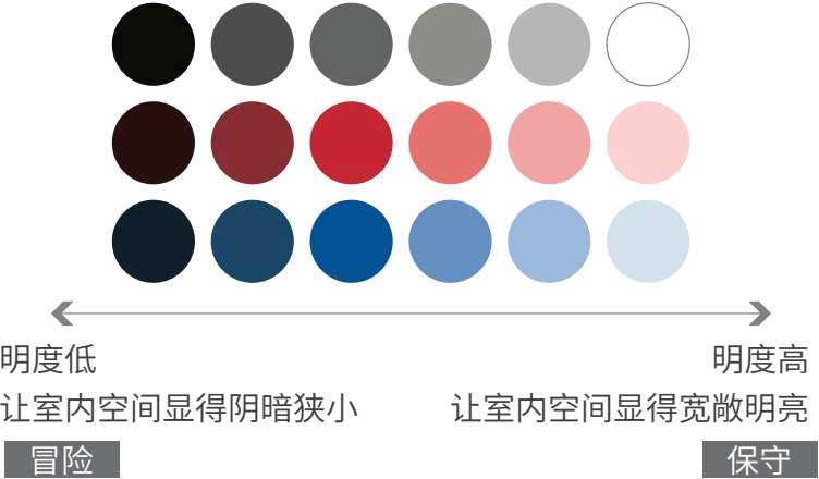 因此在室内设计中,不建议大面积使用明度过低的颜色(冒险色),这种颜色会让家变得阴暗狭小,阻隔我们与自然光的连接,影响我们的情绪。