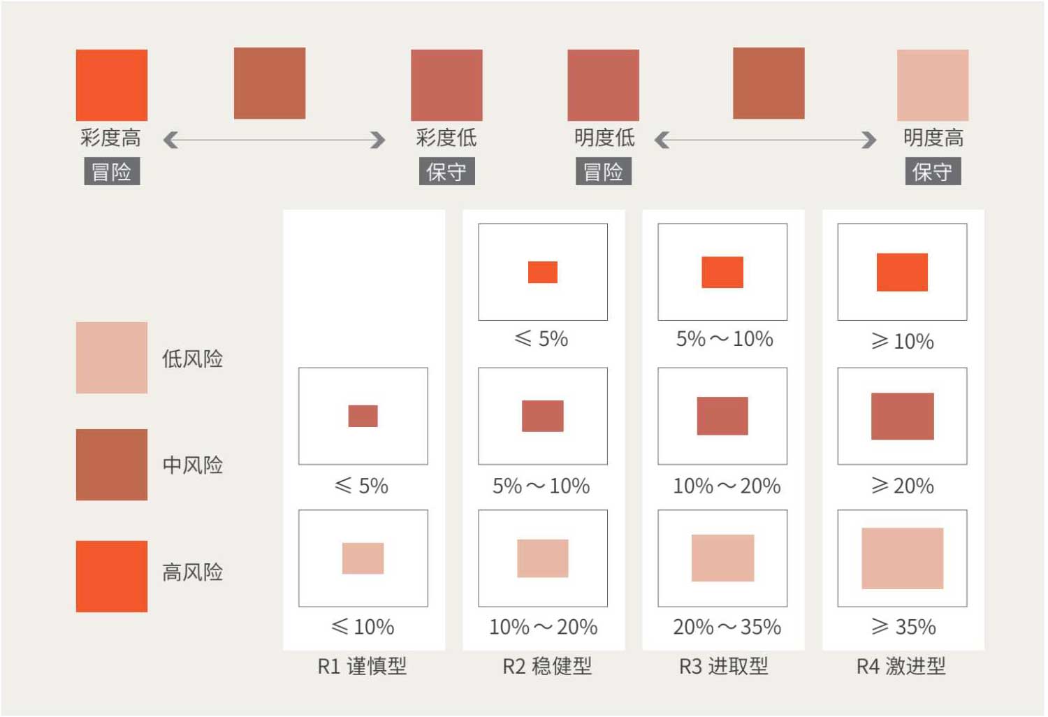理财中R4 激进型的风险系数最高,但亏损或收益也最高。而在颜色的世界里,每个风险等级都可以很出彩,但R4 激进型失败的可能性更大。不过按照路标前进,听从一些建议,就能确保不出错。