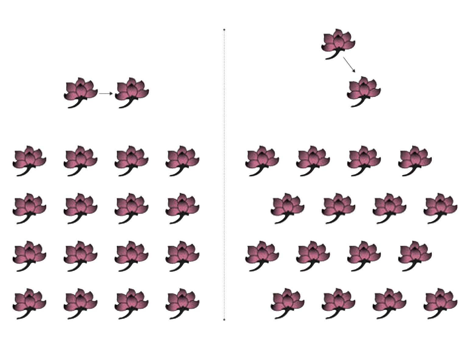 将单元纹样按不同的方向进行移动称为“平移”。通过重复这种操作方式,可创造出有节奏、有韵律的图形。这种操作虽简单,却可以创造出多种美妙的构图,在纹样设计中被广泛使用。