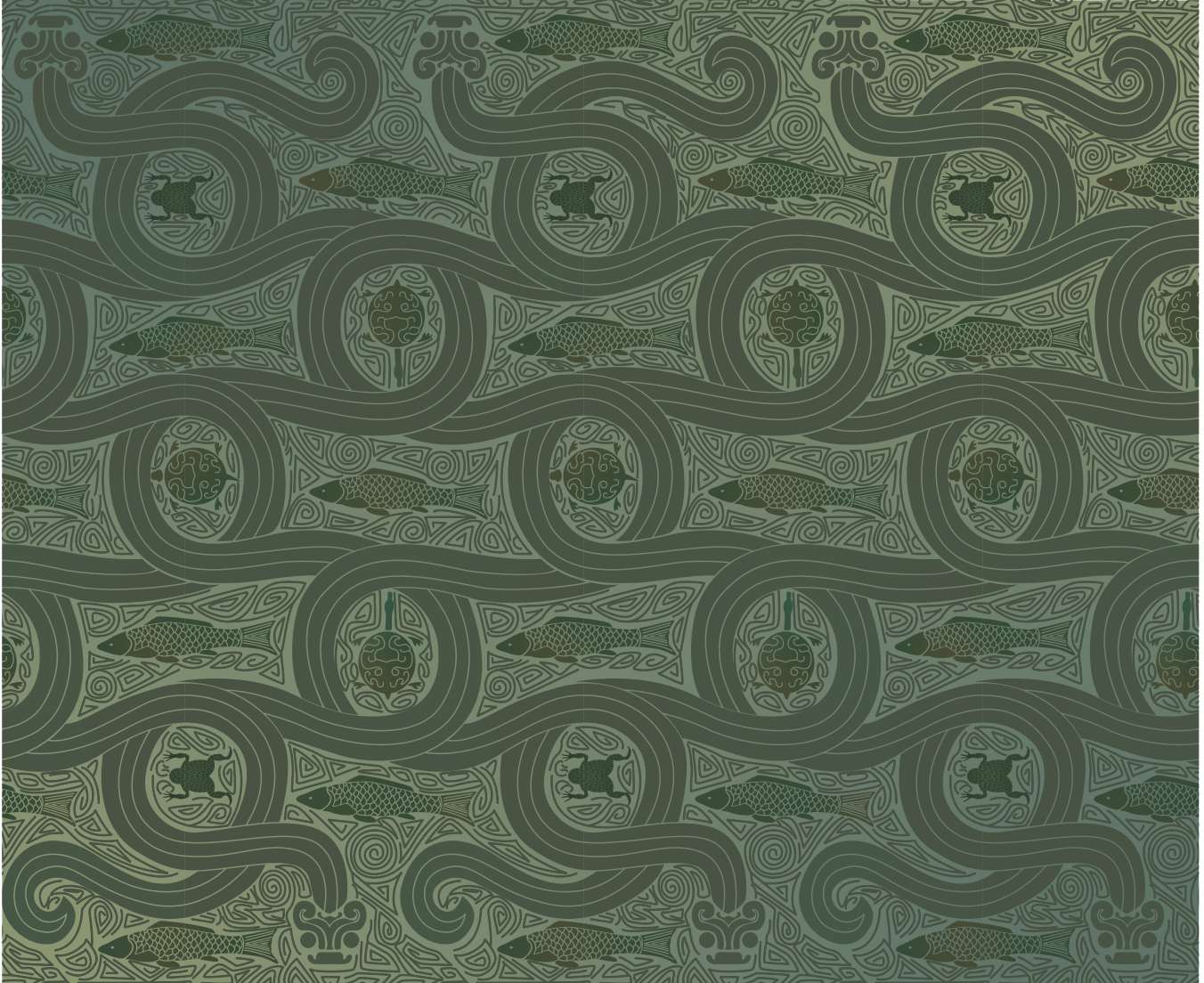 春秋战国时期诸侯争霸。这个时期既是充满硝烟战火的时代,又是一个思想和文化辉煌灿烂、群星闪烁的时代,形成了“百家争鸣”的繁荣局面,涌现出一批伟大的思想家、哲学家。周礼遭到了前所未有的破坏,以人为本的儒家思想,影响了当时的物质文化。在器物的制作上表现为礼器逐渐减少,日常用具增多,现实生活被描绘在器物上,形成了独具特色的纹样风格。纹样以人物鸟兽居多,构成以四方连续、不规则绘画式纹样为主。在以青铜器为主要载体的基础上,以漆器、丝织、竹编等为载体的装饰纹样也逐步发展。