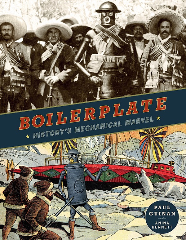 保罗·吉南和安妮娜·贝内特通过一系列经过处理的历史照片、图像、文字记录来杜撰锅炉板的事迹,将锅炉板插入美国和世界历史上许多关键时刻,通过模糊现实和虚构的边界营造了一种似是而非的真实感。就这样,锅炉板通过保罗·吉南创建的一个虚假历史网站而为人所知,不断被现代媒体报道、网络平台传播派生。他们还为此出版了一本名为Boilerplate: History's Mechanical Marvel(《锅炉板:历史上的机械奇迹》)的书,这不仅仅是一部蒸汽朋克历史冒险小说,还通过还原19世纪的反未来主义形象,重构了一位“一角钱小说”英雄,实现对他们所钟爱的“弗兰克·里德”的致敬。蒸汽动力人型机械也许在现实中已成为历史,在科幻作品中,就这样不断以新的形式嵌套进现实中。