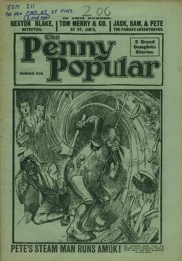 电力革命的影响无疑是巨大的,蒸汽动力不论是在现实中还是在小说中都成了过去。不过在1916年的廉价通俗小说《皮特的蒸汽人》中,蒸汽动力人形机器短暂地回归过,小说讲述了杰克、山姆和皮特的冒险故事,皮特有一个使用斧头的蒸汽人。