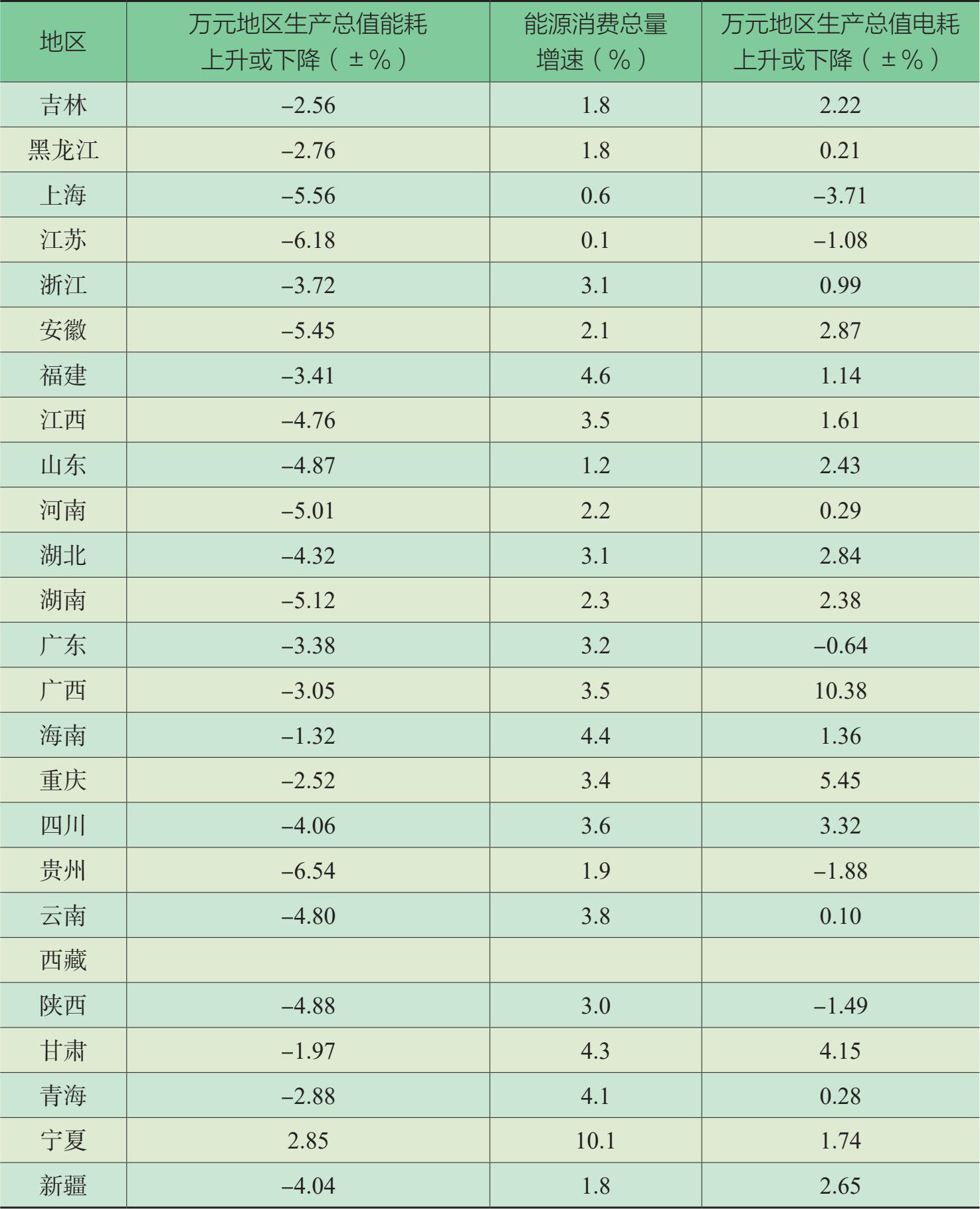 表1-1 2018年分省(区、市)万元地区生产总值能耗降低率等指标