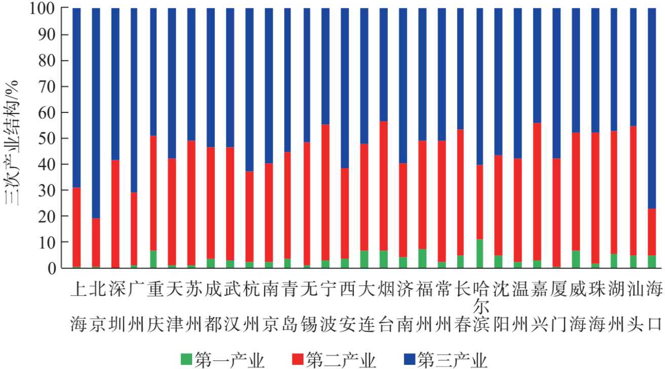 图2-8 2017年全国部分大中城市产业结构对比分析