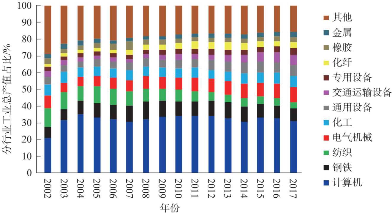 经过对高耗能行业的有效抑制,电气机械取代钢铁成为第二大主导产业,纺织退出六大主导产业。