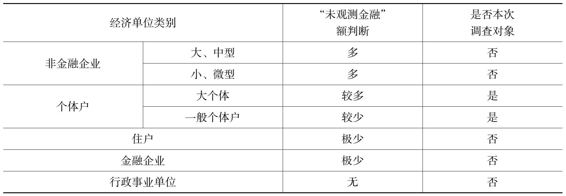 表1 经济单位类别与“未观测金融”调查对象