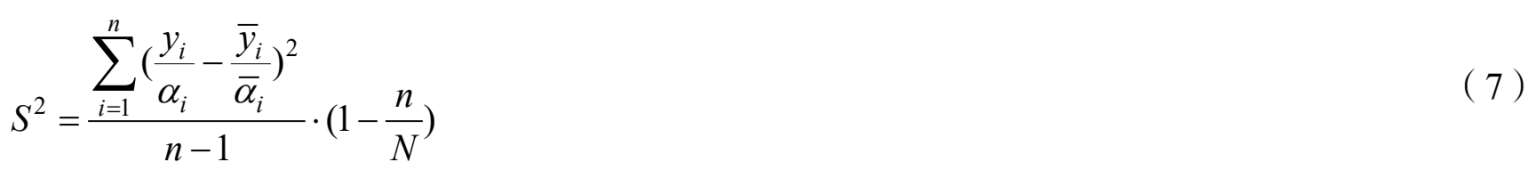 其中, N h 表示第 h 层的单位总数, n h 表示第 h 层的样本数, S 2 h 表示第 h 层的总体方差, A i 表示总体单位营业收入。