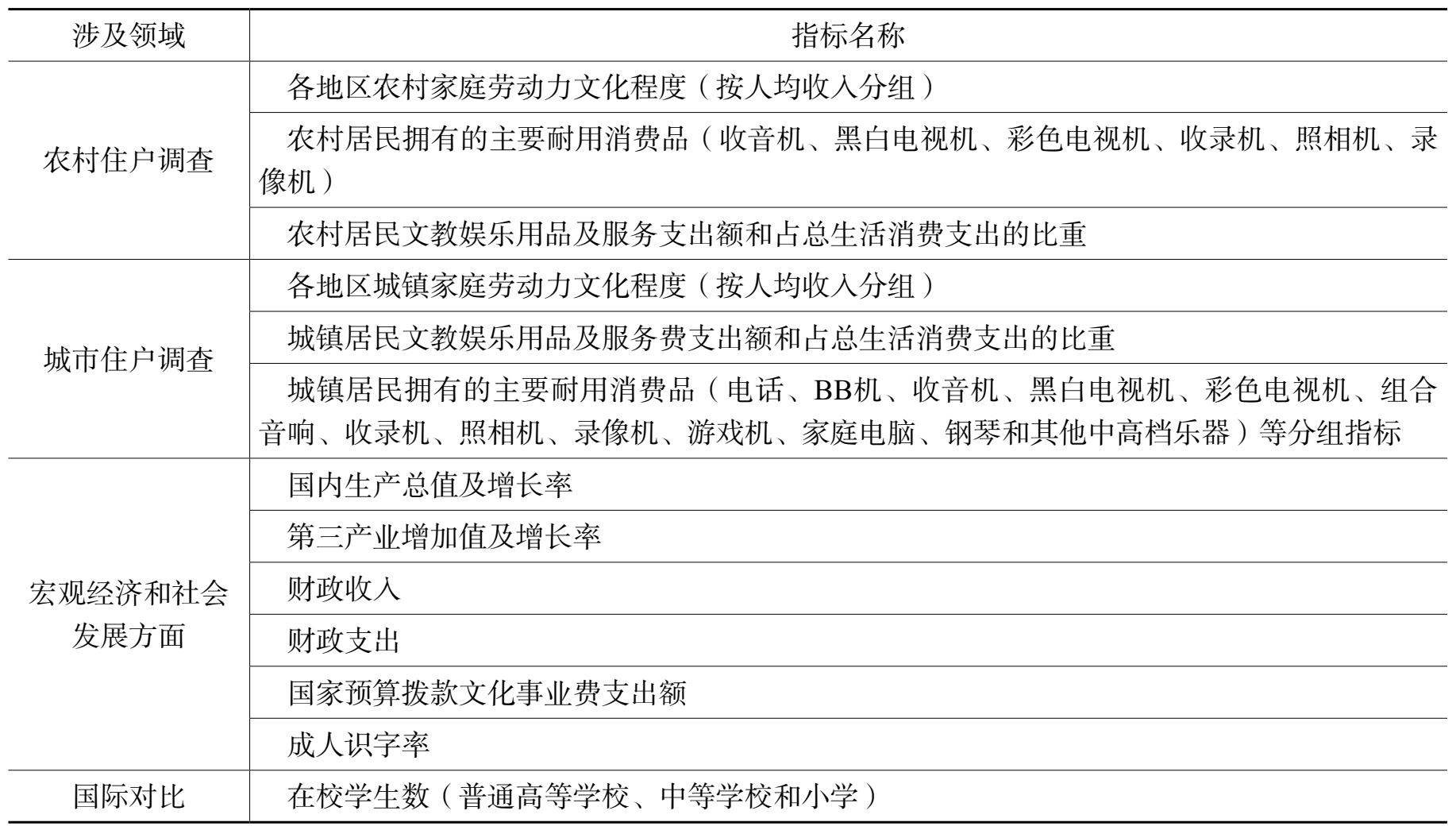 4.文化产业的相关辅助指标。