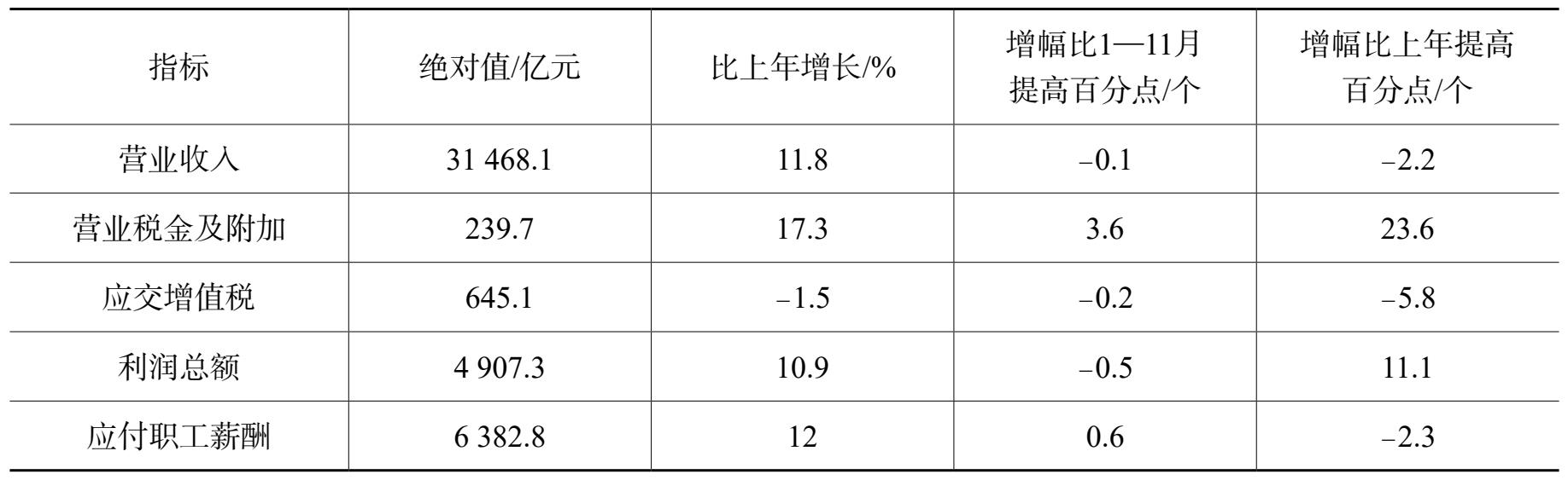 3.规模以上服务业运行走势稳定。2019年,广东规模以上服务业实现营业收入31 468.1亿元,比上年增长11.8%。其中,营业税金及附加239.7亿元,增长17.3%;利润总额4 907.3亿元,增长10.9%;应交增值税645.1亿元,减少1.5%;应付职工薪酬6 382.8亿元,增长12.0%(见表12)。