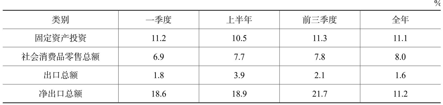 表10 固定资产投资增长一个百分点对GDP的带动作用
